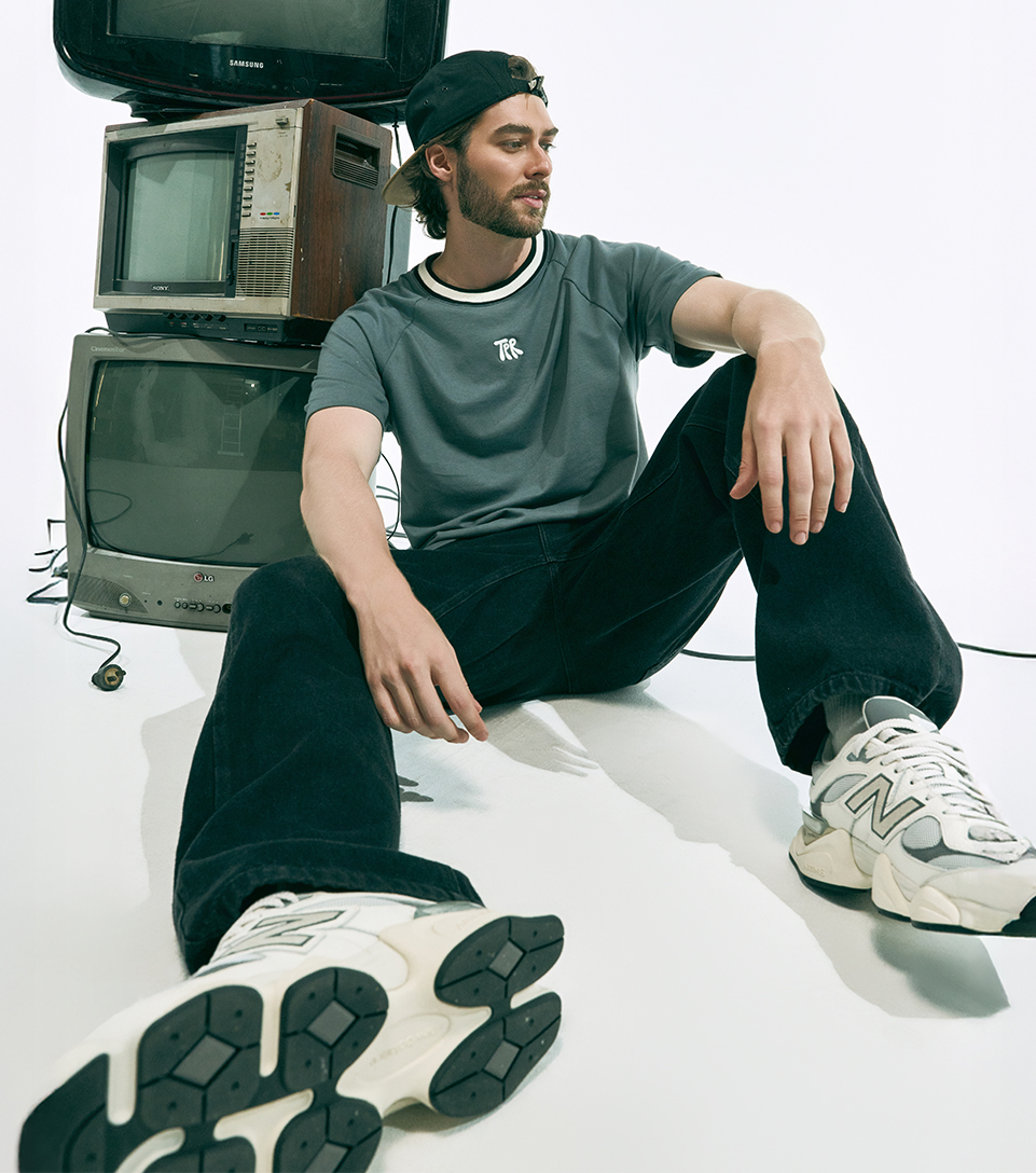 Oversized, relajado y con actitud. La T-shirt bordada con cuello tejido Typer se combina con el jean relaxed negro y la gorra puesta hacia atrás para un fit que respira libertad y estilo urbano.
